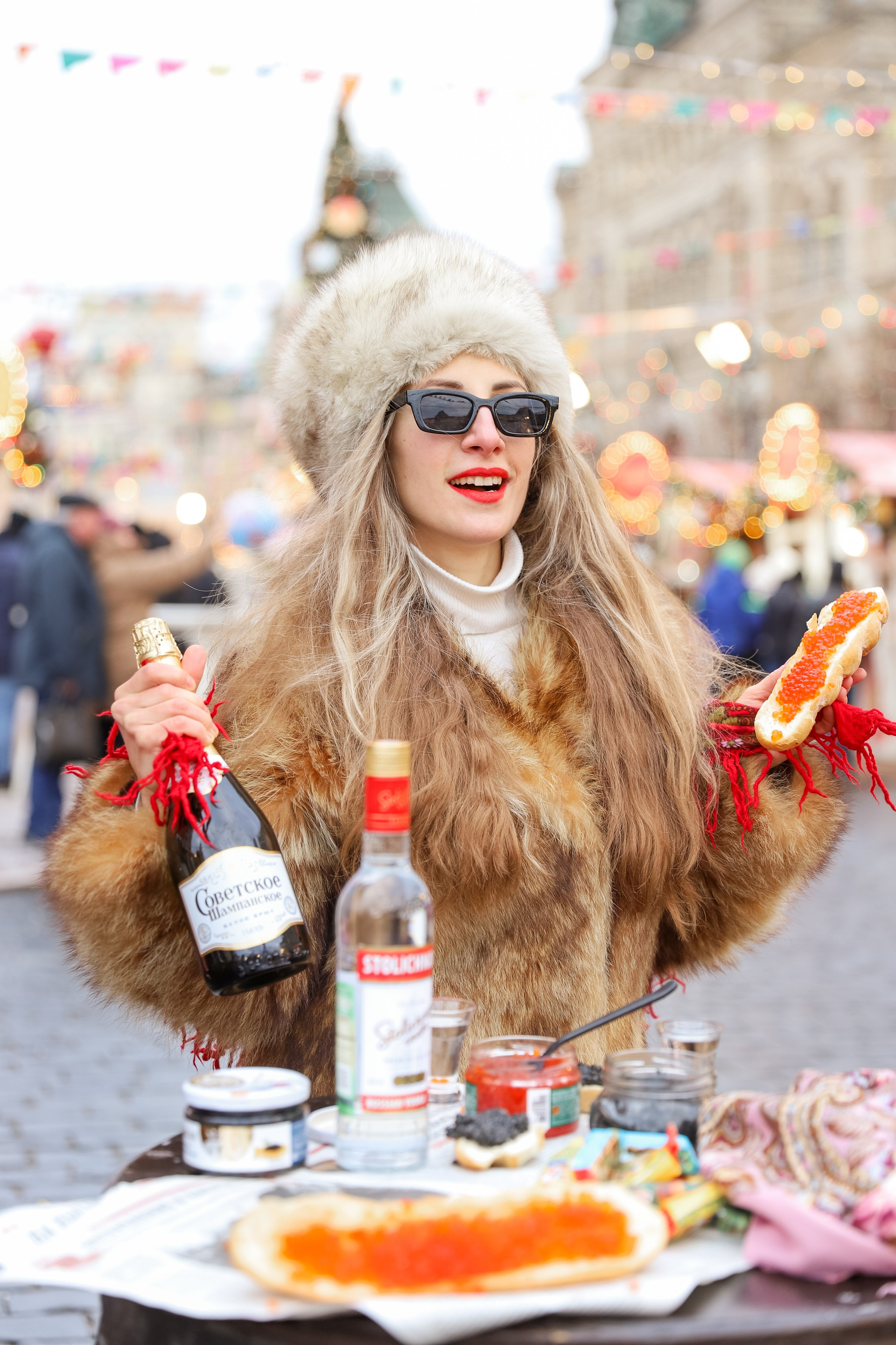 Я предоставляю реквизит для съёмки из своей коллекции: шуба из натурального енота, шапка из песца, павло-посадский красный и голубой платки. От вас по желанию: выигрышно одеться на фотосессию в белый-бежевый свитер-водолазку, купить с собой хлеб с имитированной икрой.